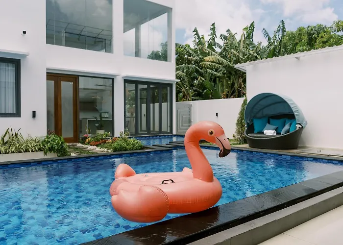 El apartamento Domu Alba Vita Denpasar ofrece una piscina exterior y se encuentra a 4 km del Monumento Bajra Sandhi. Hay coches de alquiler para que los huéspedes exploren la zona.